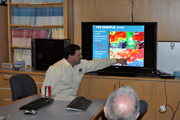 The fifth meeting of the 2012-13 year took place at the National Weather Service Forecast Office in Jackson. During the meeting, NWS Jackson Lead Forecaster Chad Entremont gave a presentation on the recent dual-pol upgrades to area radar sites.